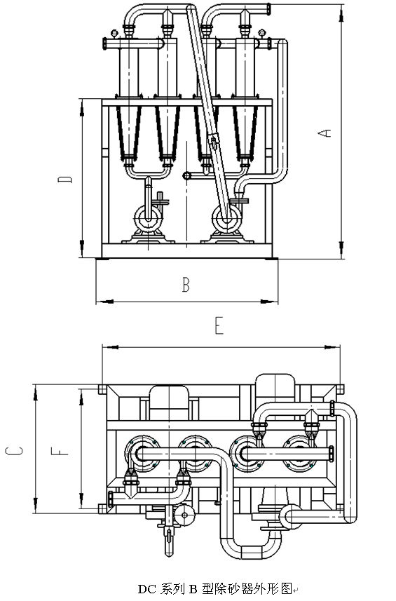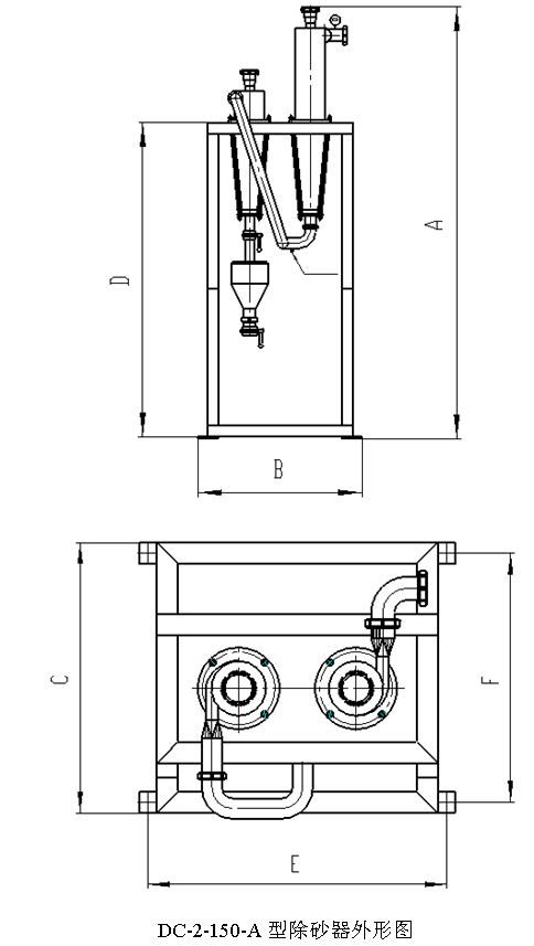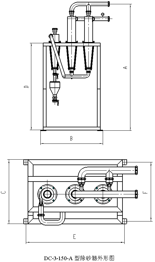 ☆性能參數: | 規格型號 | 處理量(m3/h) | 進(jìn)料壓力(bar) | 除砂效率(%) | 重量(㎏) | | DC-2-150-A | 10-15 | 0.2-0.3 | ≥98 | 120 | | DC-3-150-A | 30-35 | 0.2-0.3 | ≥98 | 150 | | DC-4-150-B | 30-35 | 0.2-0.3 | ≥98 | 400 | 附圖一  附圖二  附圖三